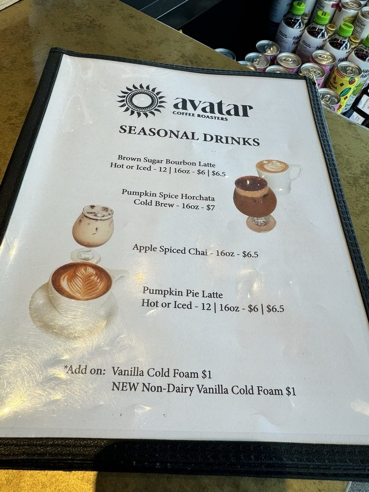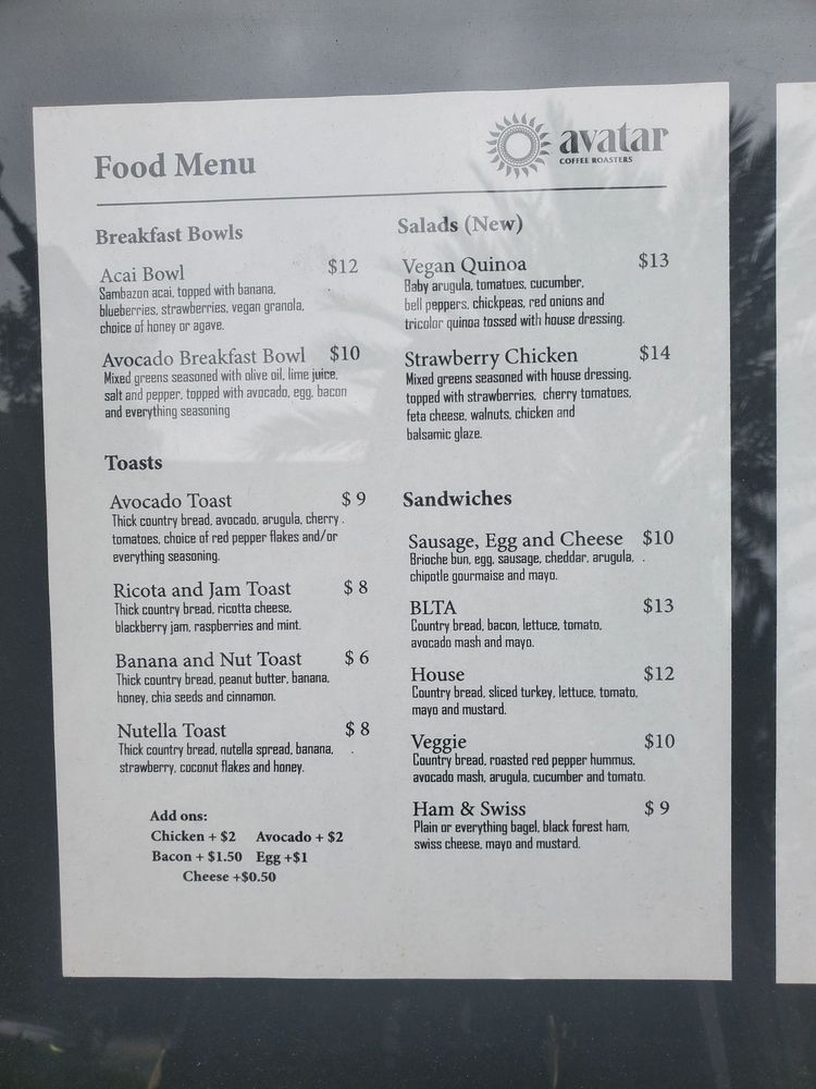 Avatar Coffee in Santa Ana offers a top-tier coffee experience in a modern and cozy setting. With a diverse menu of coffee, teas, and delicious food options, customers rave about the ambiance and friendly service. The visually appealing decor and ample seating, both indoor and outdoor, make it a perfect spot for working or socializing. Standout items include the S'mores Nitro Cold Brew, the Cardamom Vanilla Latte, and the Avocado Toast with customizable add-ons. While some minor issues like pepper flakes in the food or spilled coffee cups have been noted, the overall quality of the drinks and meals shines through. With convenient amenities like free Wi-Fi, happy hour specials, and eco-friendly practices, Avatar Coffee is a must-visit for coffee enthusiasts and food lovers alike.